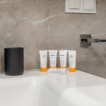 חדרי האמבטיה הפרטי מצוידים במקלחת, מייבש שיער ווילונות אמבטיה.